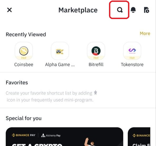 Если предыдущие этапы делали с компьютера, то этот удобнее проходить с телефона. Так проще добраться до Маркетплейса Binance.