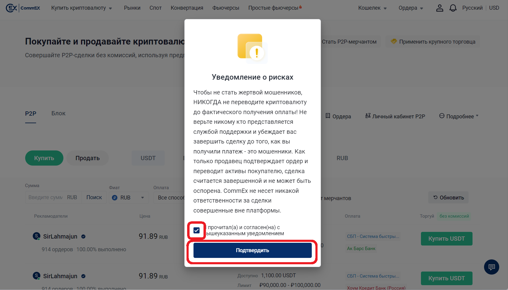 Если вы хоть раз покупали криптовалюту где угодно – на Binance, в Telegram Wallet или где-нибудь ещё – покупка USDT на бирже CommEX не составит труда. Базовый принцип тот же самый – отправляете продавцу рубли на его банковскую карту, а сами получаете USDT.