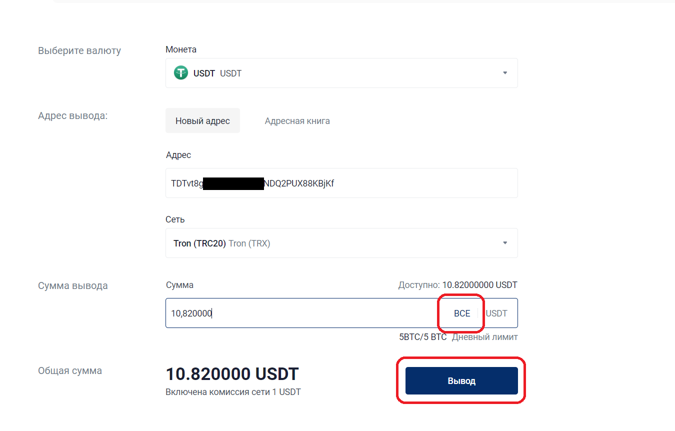 Важно: Минимальная сумма вывода с CommEX – 10 USDT. Поэтому покупайте на сумму не менее 10 USDT.