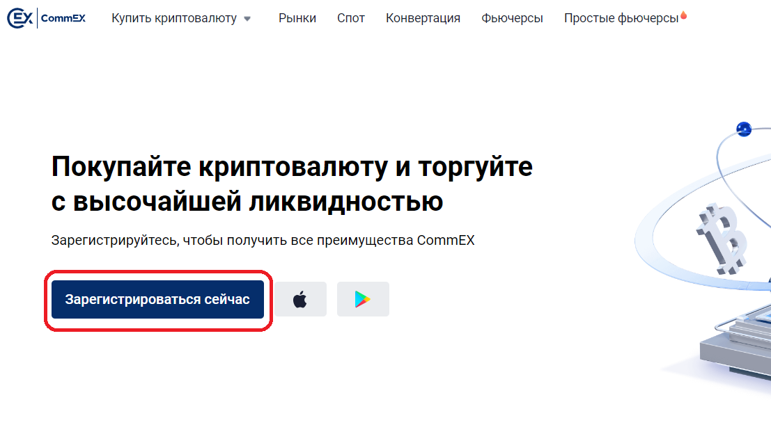 2. Перейдите на сайт https://www.commex.com/ru и нажмите «Зарегистрироваться сейчас» (или «Регистрация»).