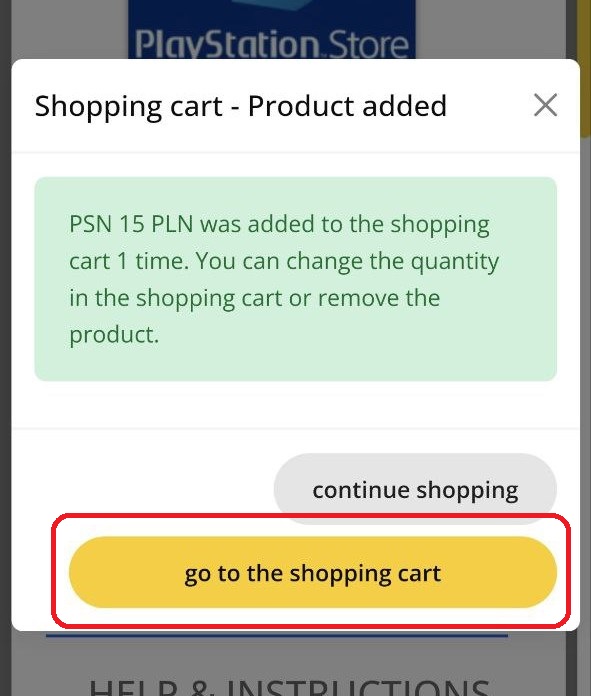 7. В открывшемся окне нажмите Go to shopping cart, чтобы перейти к расчёту. Или выберите Continue shopping, если хотите посмотреть ещё что-то.