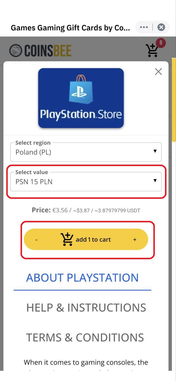 5. На экране Coinsbee в строке Select Region выберите нужный регион. В нашем случае это Польша. В меню Category выберите «Games». В списке предложений выберите PlayStation.