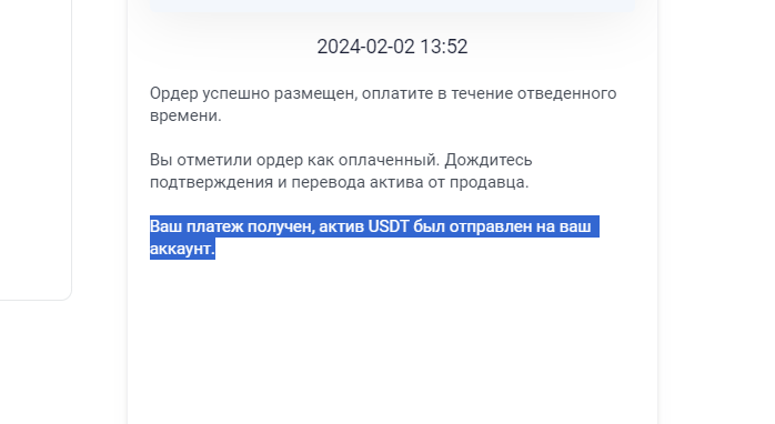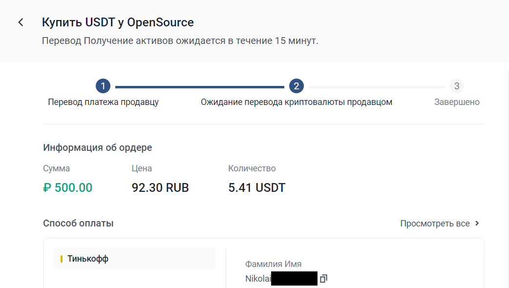 9. Дождитесь, пока продавец переведёт вам криптовалюту.