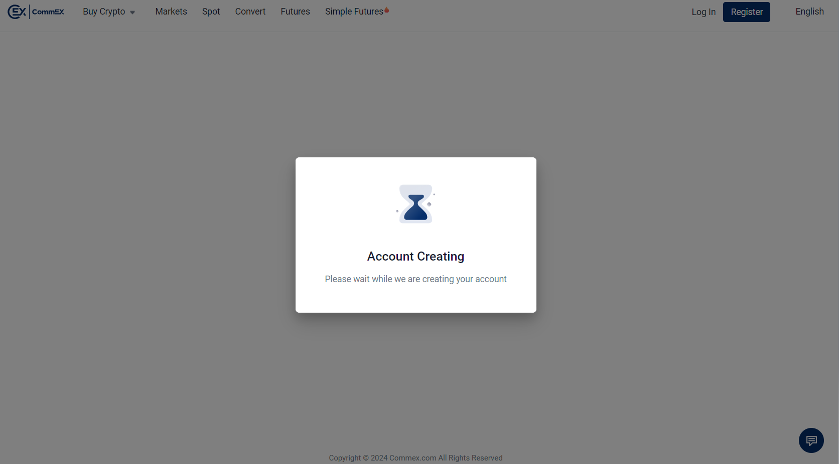 5. CommEX начнёт создание вашего аккаунта. Это займёт несколько секунд.