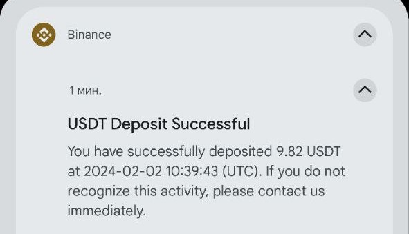 Теперь осталось подождать несколько минут, пока деньги зачислятся на ваш аккаунт Binance. Об успешном зачислении вы узнаете из уведомления Binance и письма на электронную почту.