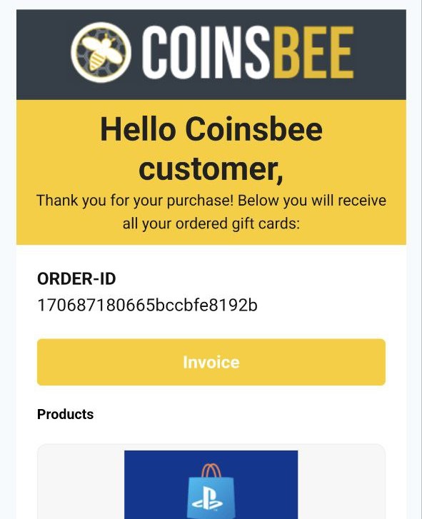Теперь дождитесь письма от Coinsbee. Обычно оно приходит в течение 5–10 минут.