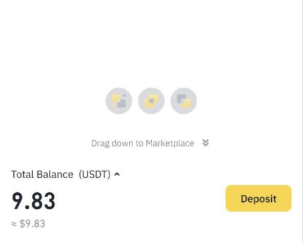 1. Откройте мобильное приложение Binance. На главном экране потяните вниз, пока не почувствуете вибрацию и не увидите надпись «Потяните вниз для перехода на Маркетплейс».