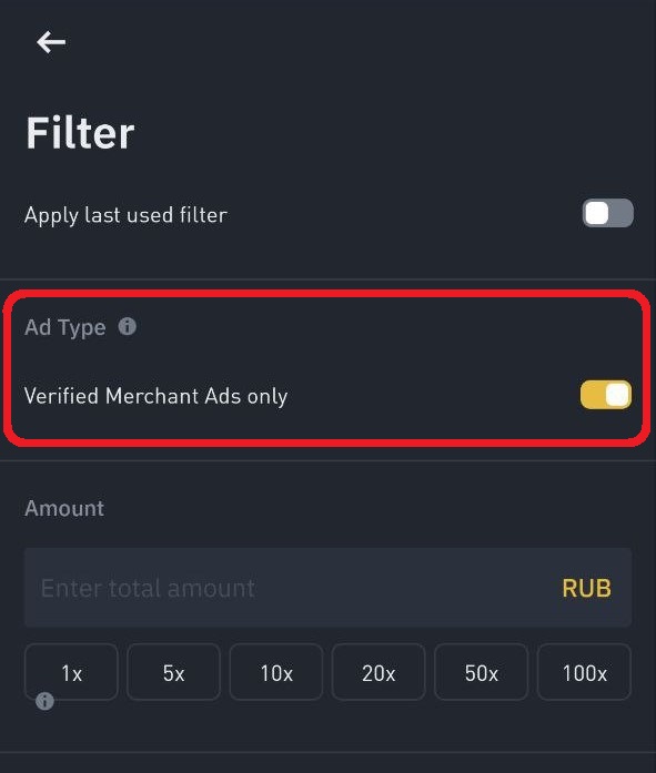Если на P2P-рынке есть пункт «Показывать только объявления от мерчантов» – включите его.