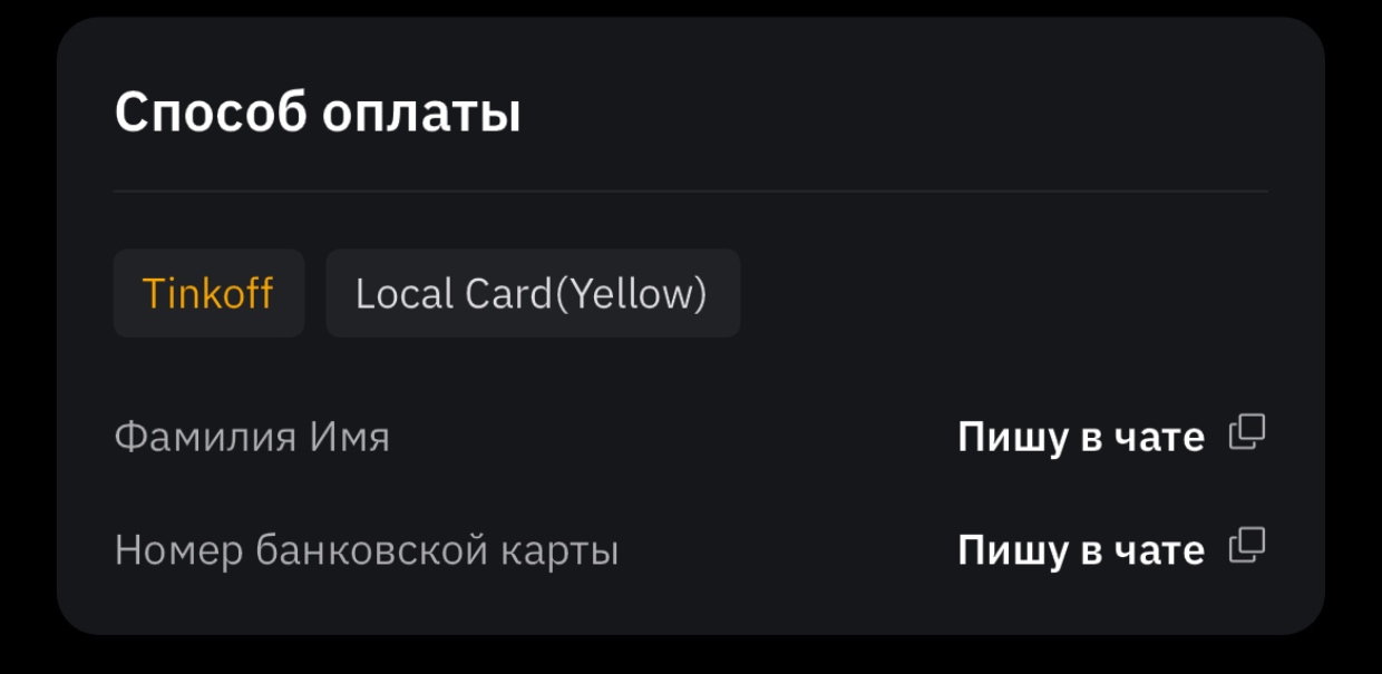 Например, в ордере указано, что вы должны отправить деньги на карту *4272. А продавец в чате пишет, что вы должны отправить деньги на карту *9831. В этом случае лучше сразу отменить ордер.
