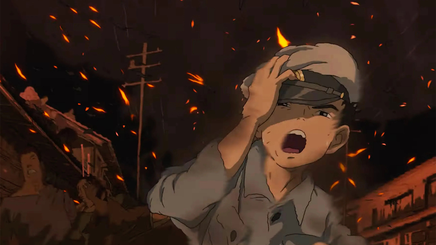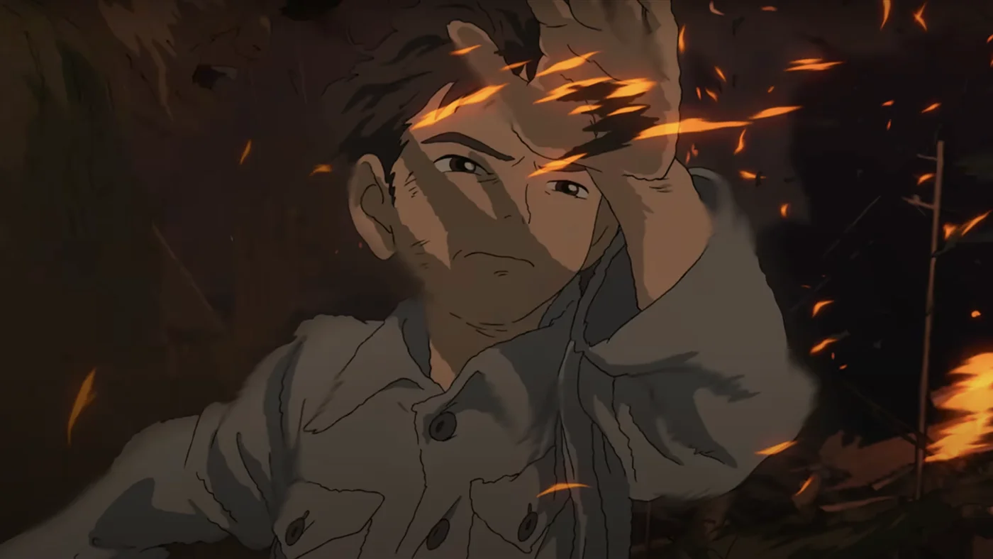 Единственной более или менее революционной для Ghibli кажется сцена в самом начале фильма, когда Махито прорывается к горящей больнице, в которой погибает его мать. Кадры смазанные, текучие и расплавленные, что уже необычно для Миядзаки, мастера мягких, но огранённых форм.