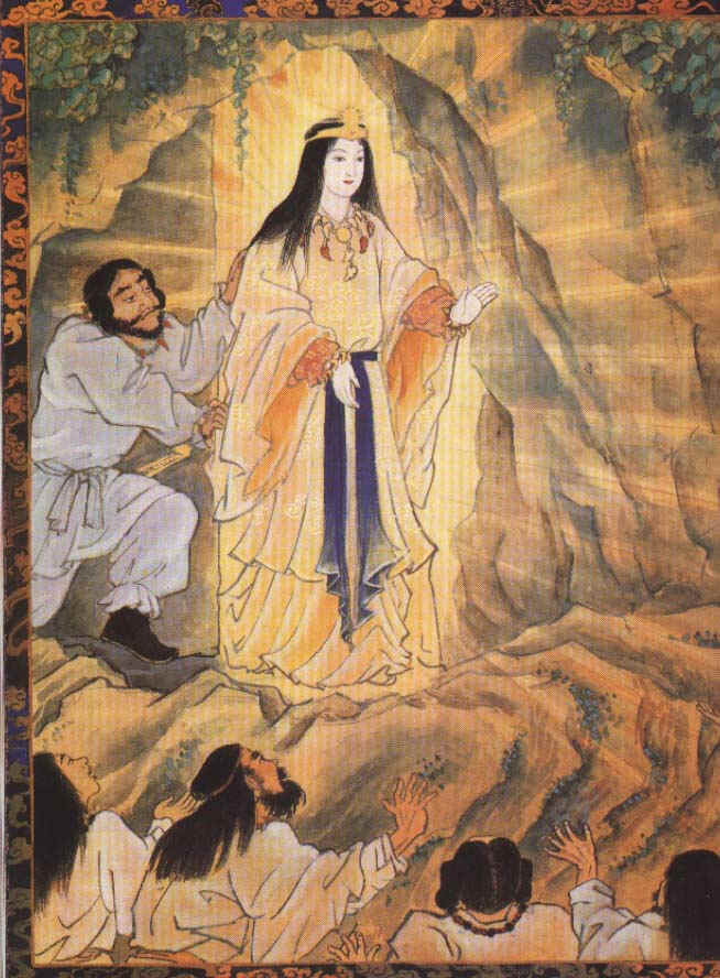 В самой известной легенде она из-за обиды покидает мир под небом и уходит в пещеру, лишая всех своего света. И выманить её оттуда оказывается не слишком просто.