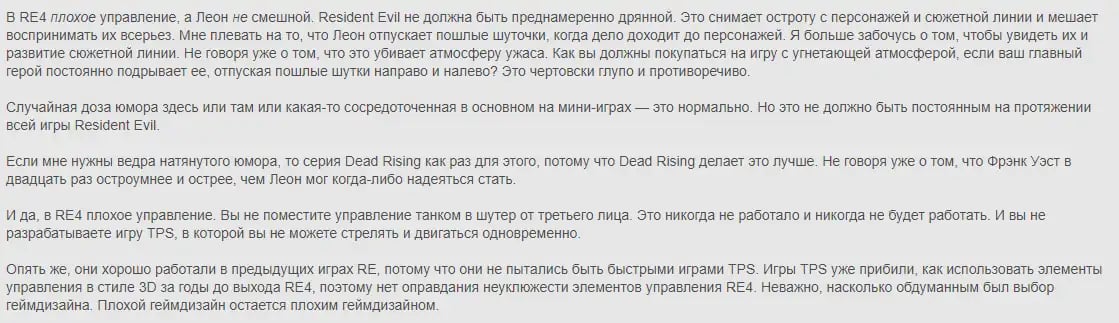Со мной были согласны и многочисленные фанаты франшизы: «Это не Resident Evil!», «Что за чёртова чёлка у Леона?», «Какого хрена мой любимый survival horror превратился в шутер от третьего лица?». Именно такие возгласы часто возникали в интернете тех лет – и с ними было сложно не согласиться.