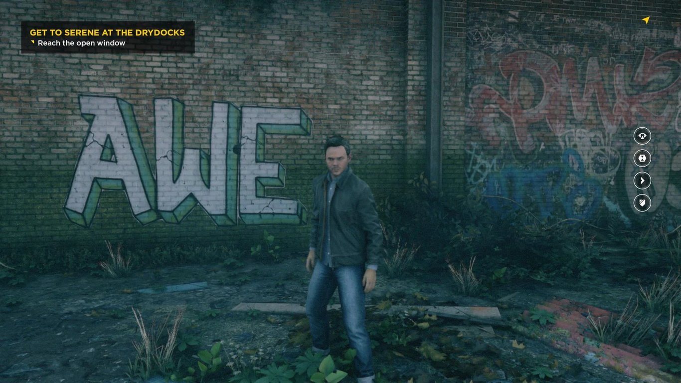 На нескольких локациях можно найти граффити с надписью AWE. Такую же надпись носил некий агент из This House of Dreams.