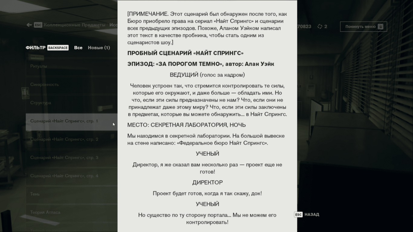 И офигеваем, понимая, что Control – это тоже эпизод Night Springs, написанный Аланом Уэйком. И всё это – часть большого плана, созданного писателем, чтобы вырваться из Тёмной обители.