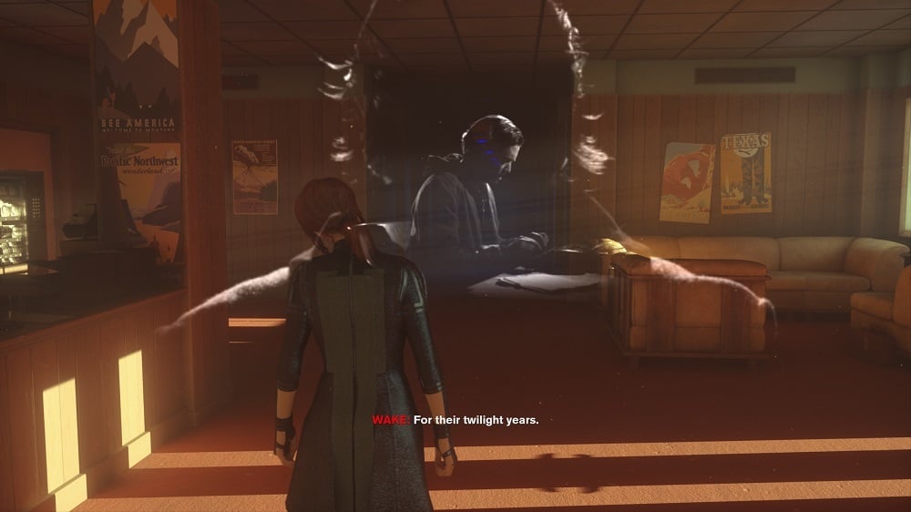 По пути в Отдел расследований Джесси проходит через мотель «Оушенвью», где видит Алана Уэйка и Томаса Зейна во плоти. Они стоят и беседуют. Зейн объясняет, что он был просто «режиссёром», а Алан вспоминает, что заперт в Тёмной обители и ищет путь наружу. Упоминается и Скрэтч.