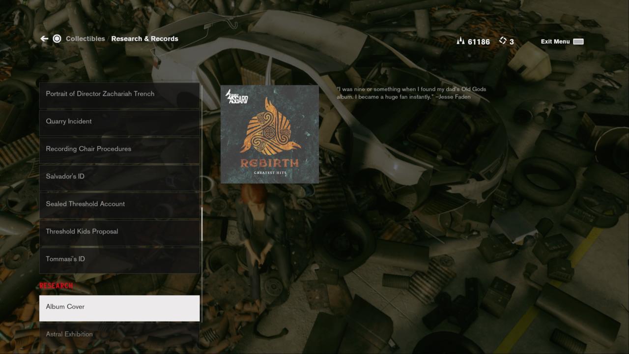 Old Gods of Asgard. Сейчас будет шокирующее открытие – это внутриигровой псевдоним реальной группы Poets of the Fall. Они написали три песни для Alan Wake и одну для Control, а в самой Control Джесси Фейден находит диск Old Gods of Asgard и признаётся, что когда-то слушала эту группу.
