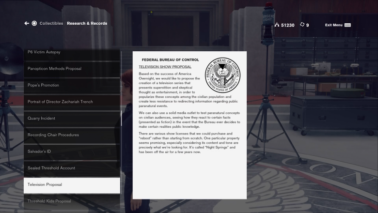 Среди всех записок можно найти информацию о том, что ФБК «воскресил» сериал Night Springs – чтобы замаскировать реальные паранормальные явления под эпизоды шоу. Правда, сам сериал в Control не показывают.