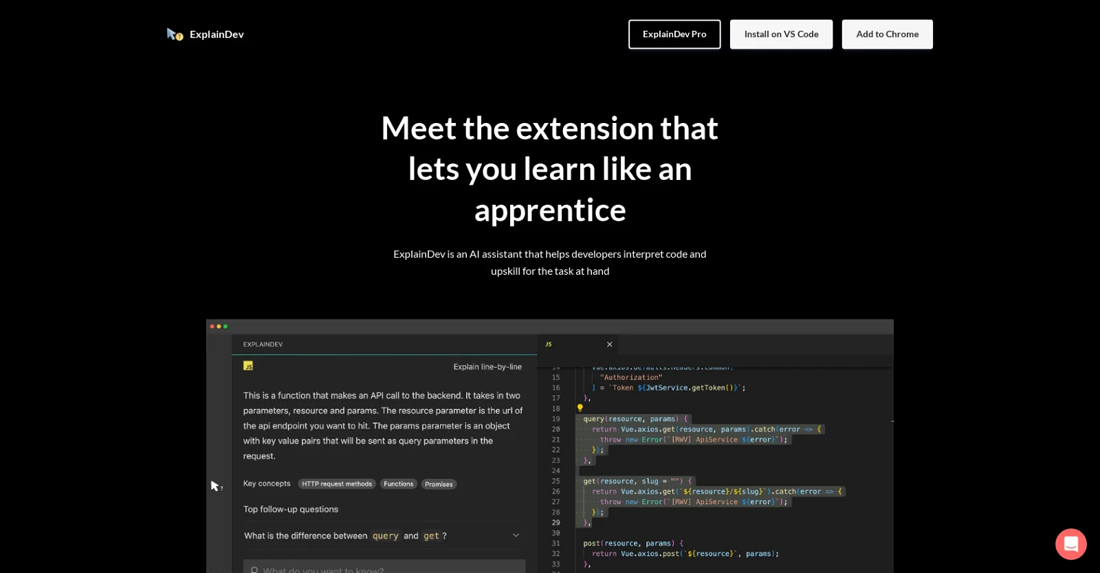 Explain Dev. Ещё один помощник для начинающих специалистов. Прекрасно обучает, анализируя ваш код и подсказывая. Если вы вдруг не любите, когда всё делают за вас и хотите разобраться, то это то, что нужно.