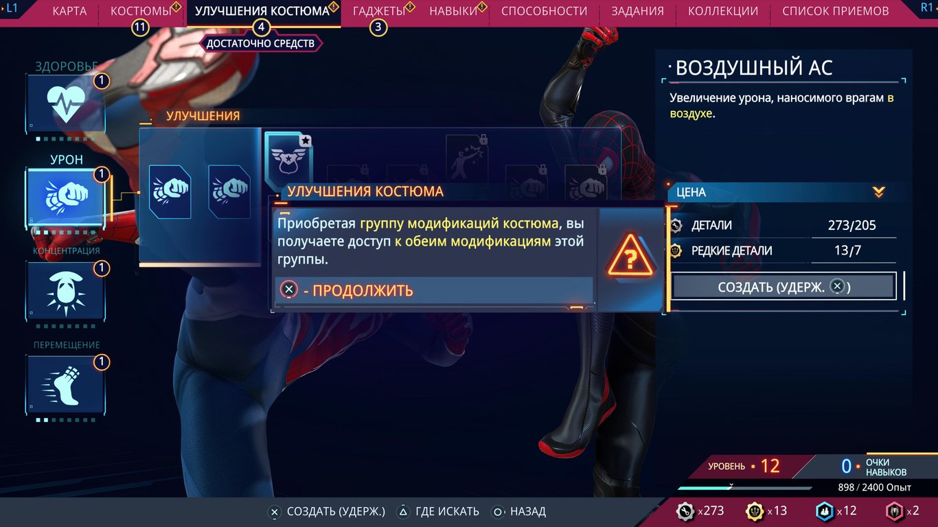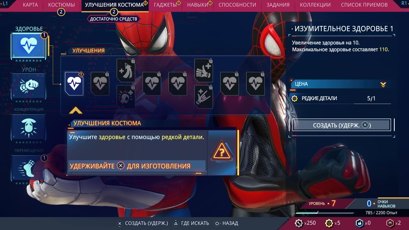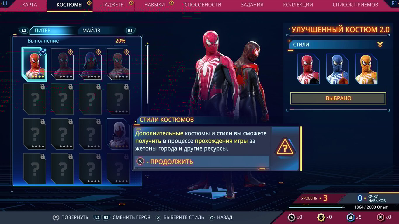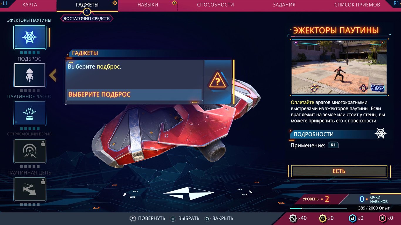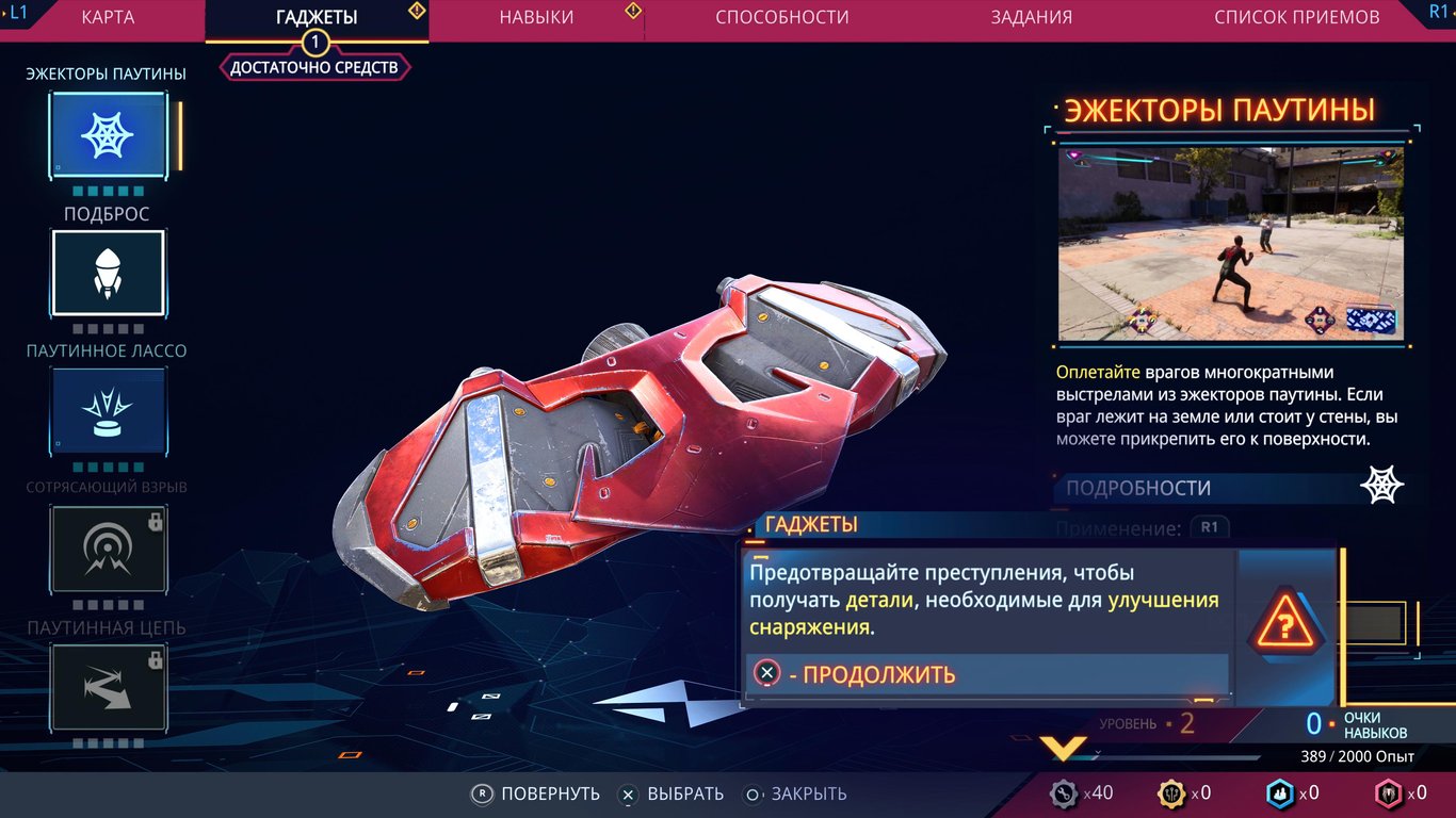 Прокачивать нужно не только способности, но и костюмы с гаджетами.