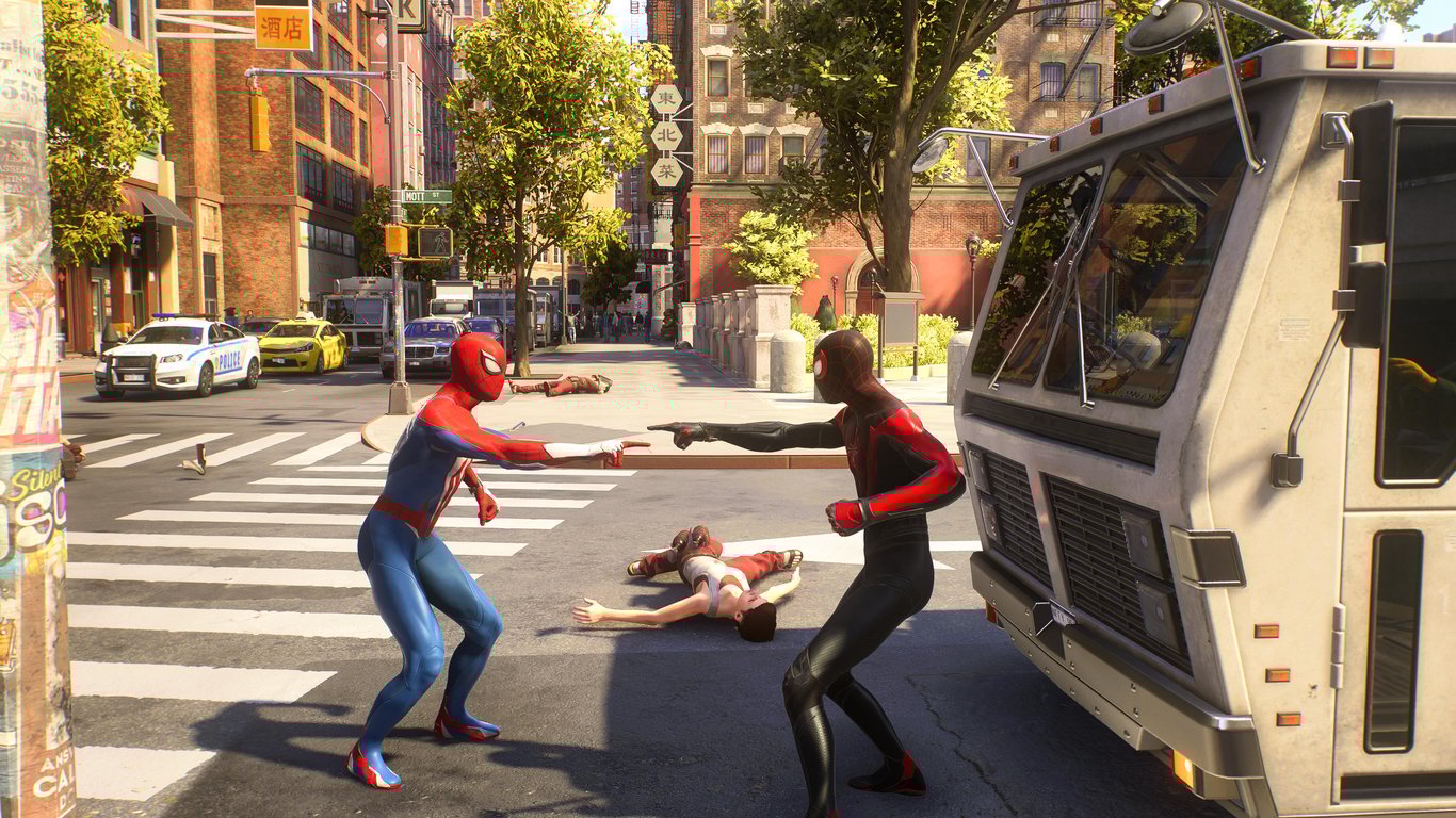 В то, что вы не единственный персонаж в этом мире, помогает поверить и то, что время выполнения различных активностей вы можете встретить как второго Паука, так и других героев, которых успели повстречать по сюжету. Они будут помогать вам наваливать люлей, а в конце можно подойти и совершить какое-нибудь забавное действие с ними. Эти персонажи также по-разному реагируют на то, какой именно из Пауков вступил в схватку, и диалоги между ними отличаются.