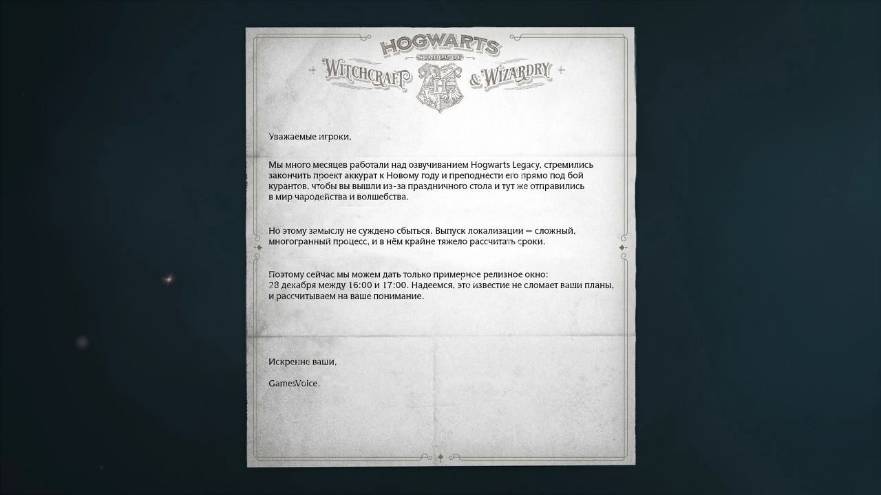 Студия GamesVoice выпустила обращение к пользователям: озвучка ПК-версии Hogwarts Legacy будет доступна уже 28 декабря.