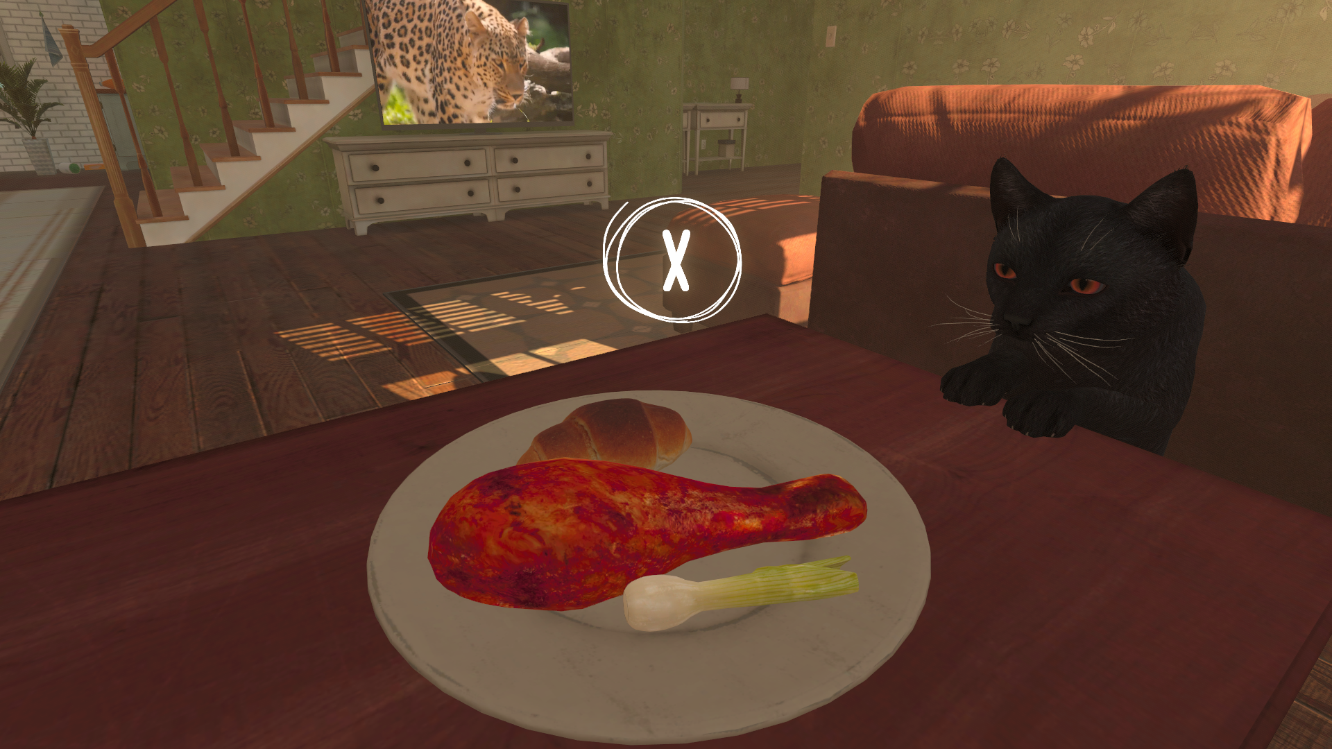 Кошка у нас гуляет сама по себе. Буквально – игрок практически не принимает никаких решений. Кошка хочет стащить еду со стола, по пути разбив всю посуду? Вы будете нажимать кнопки, чтобы разбить посуду. Хозяйка пытается проявить доброту к кошке? У вас на выбор «Поцарапать» или «Укусить». Навязчивый рассказчик постоянно ругает кошку и вещает о том, что вот дикие кошки круты, и ты, Доуг, должна быть дикой!