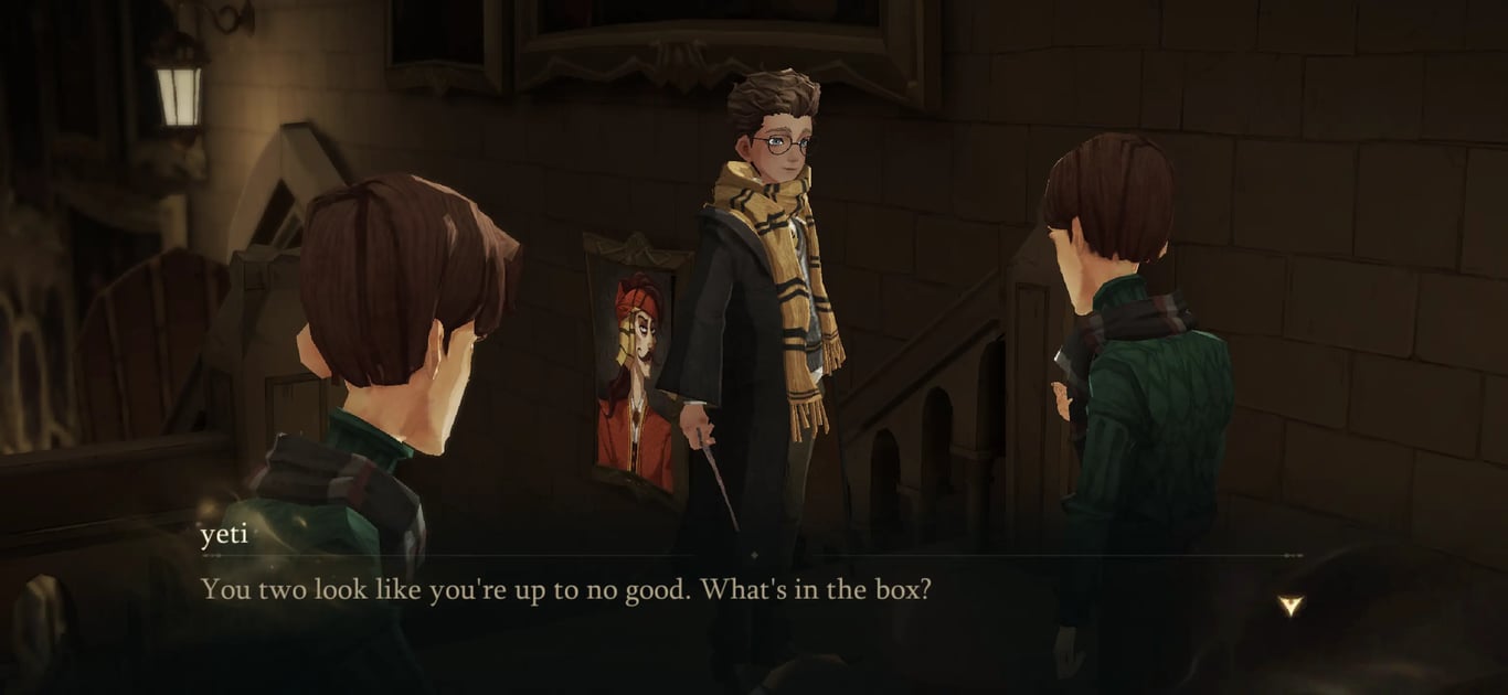 На церемонии распределения выясняется, что одна из первокурсниц, которая ехала вместе с протагонистом в Хогвартс, пропала. Разумеется, надо отправляться на её поиски. Находим потеряшку довольно быстро: и она рассказывает, что с момента приезда в Хогвартс она чувствовала присутствие кого-то ещё и слышала чьи-то шаги. Инфернальное зло вновь проникает в Школу чародейства и волшебства – но как-то не очень-то активно. А если антагонисты не хотят быть антагонистами, то и чего нам волноваться? У нас есть танцы!