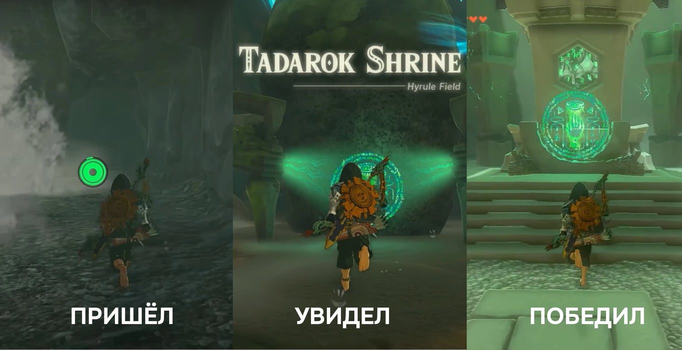 Мир TotK можно условно разделить на зоны. В каждой из них есть точка активности, и она предполагает какое-то взаимодействие. Например, то же Святилище:
