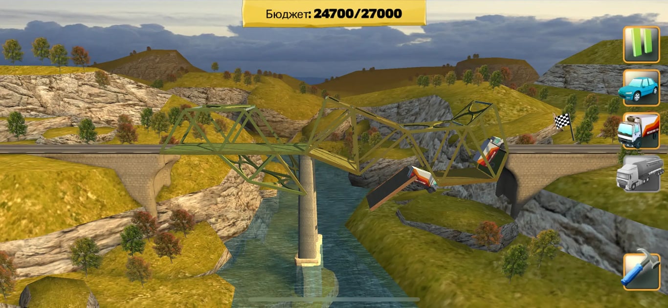 Bridge Constructor – это опять головоломка, в которой предстоит строить мосты, чтобы машинки могли пересечь реку/пропасть/нужное подчеркнуть. Разработана студией ClockStone и выпущена в 2012 году. Кроме «яблочных» устройств, также доступна на Android и Nintendo Switch.