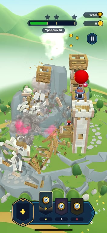 В предыдущих играх мы строили и созидали, в этой будем разрушать. Там нас просили думать, тут сильно напрягаться не придётся. Стреляешь в башенки, башенки падают, условные болванчики лопаются с забавным звуком. Игра исключительно «на расслабон», уровни короткие, визуал яркий и приятный. А ещё просто офигительно сделанная вибрация. Не DualSense в Astrobot, но тоже весьма приятно задействует возможности Haptic Engine.