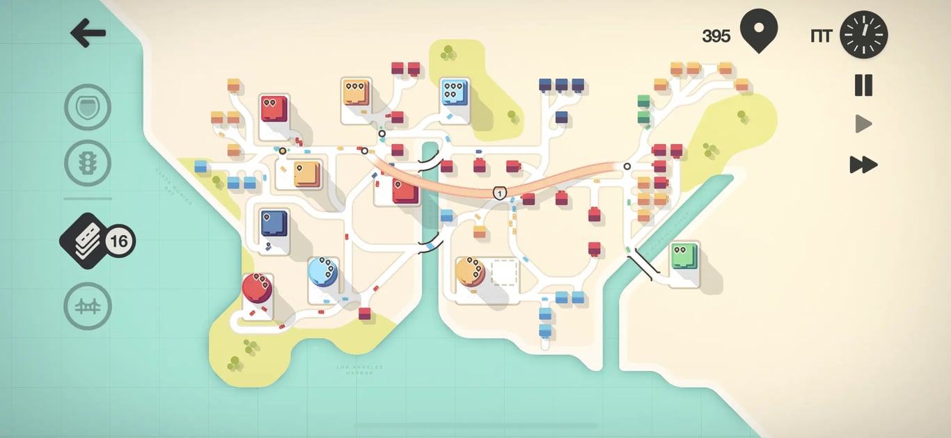 Одним из ключевых аспектов геймплея является его простота. Понять, как управлять потоком транспорта и создавать дорожные сети, не сложно. Гораздо сложнее не запутаться в хитросплетениях дорог, особенно если никогда раньше не играл в подобные игры. Порой Mini Motorways способна бросить игроку серьёзный вызов – и нужно будет приложить усилия, чтобы добиться успеха на более сложных уровнях.