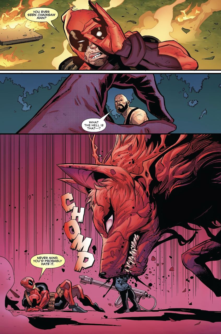 В Deadpool #1 (2024) Уэйд Уилсон сделал отсылку «Человека-бензопилу» и вызывал демона Лисы характерным жестом из манги. Его таким образом призывал Аки Хаякава. В обмен на свою часть тела он мог использовать силу демона в бою, подняв руку в жесте лисьей мордочки и произнеся слово «Кон». В результате появлялась голова демона Лисы, которая мгновенно вгрызалась в тело цели, проглатывая его целиком или разрывая на части.
