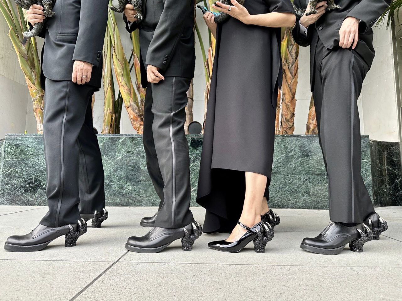 Авторы фильма «Годзилла: Минус один» появились на церемонии в туфлях, дизайн которых вдохновлён образом Годзиллы: