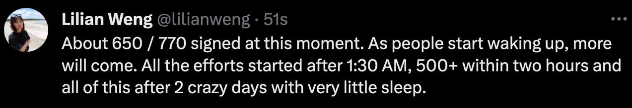 И для сотрудников это звучит, как выстрел. Компания буквально разваливается на куски. и оттуда готовятся уйти практически все сотрудники. Их условия довольно просты — либо пустые коридоры OpenAI, либо Альтман снова во главе.