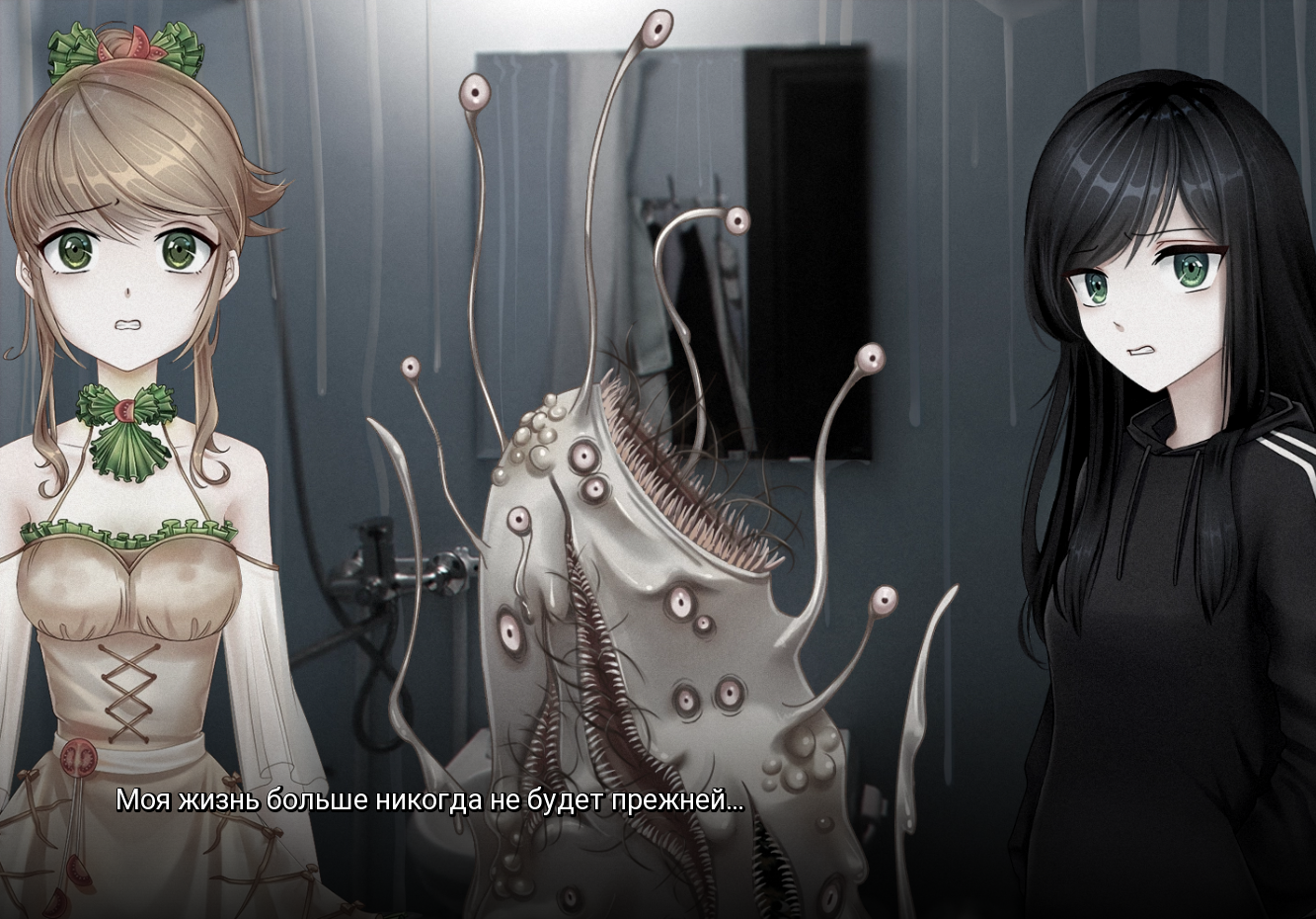 Напрягаться при чтении вообще не придётся, ведь эта визуальная новелла не привыкла ни к длинным текстам, ни к витиеватым фразам. Но это не значит, что атмосфера будет бедной, а чтение — скучным. В этой игре главное не как, а о чём.