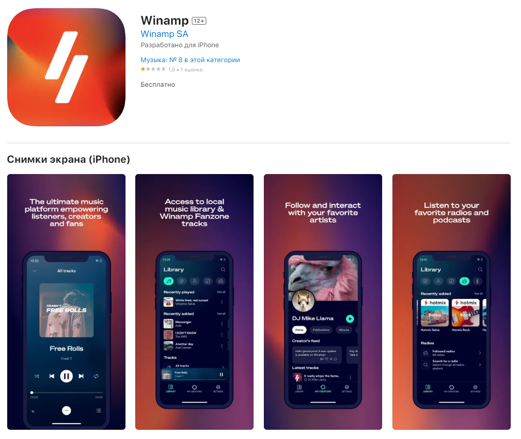 Winamp вышел на iOS – но в виде платного стримингового сервиса