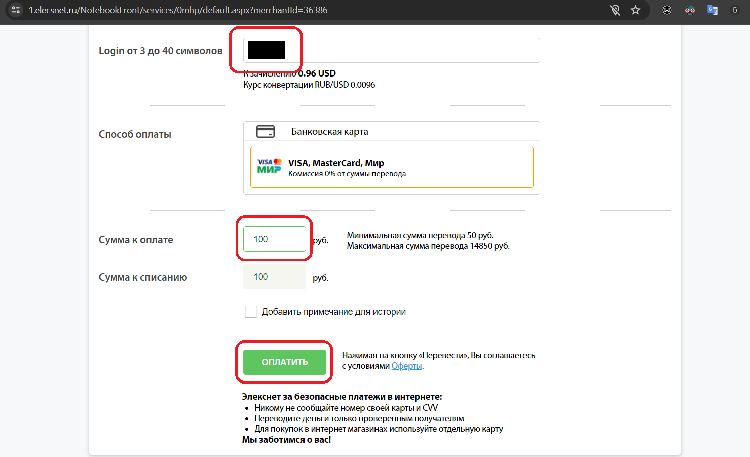 4. Нажмите «Оплатить».