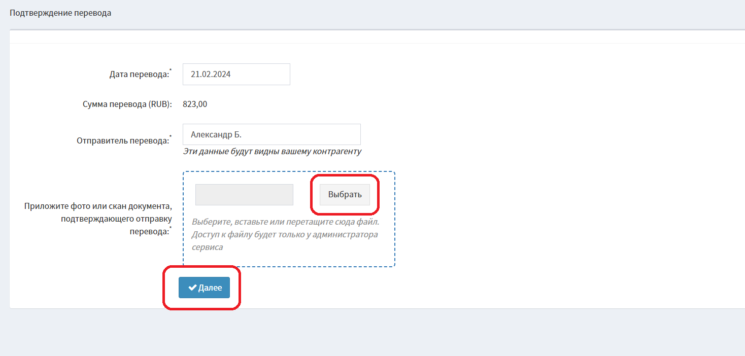 6. Видим номер карты. Переводим указанную сумму в рублях на этот номер карты в своём банковском приложении и сохраняем квитанцию. Нажимаем «Подтвердить перевод».
