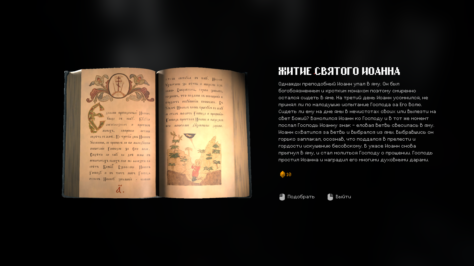 В игре не объясняют, что это и зачем, но подсчёт идёт в левом верхнем углу экрана. Ещё "очки святости" даёт возжигание кадила у икон в домах и рандом. Есть даже своеобразная ветка прокачки.