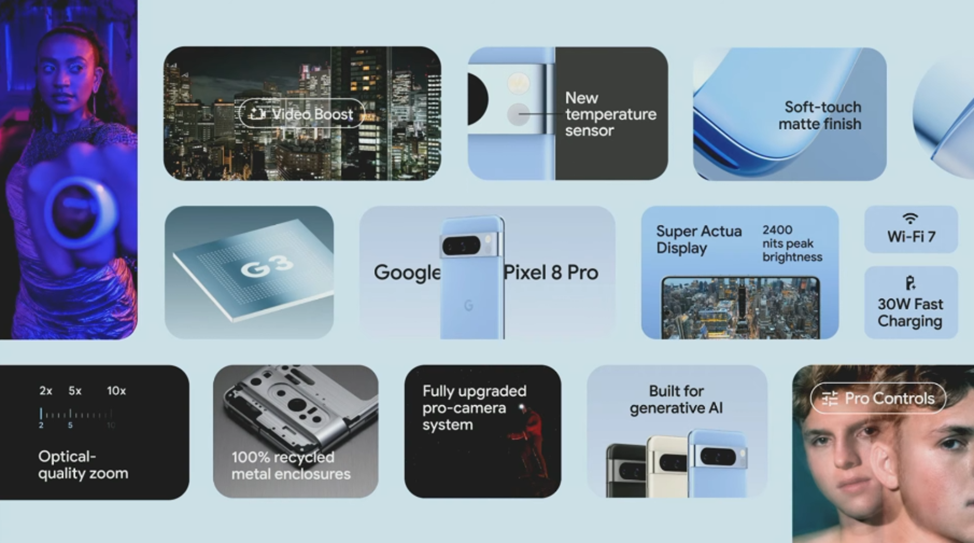 • цена Pixel 8 – от $699, Pixel 8 Pro – от $999.
