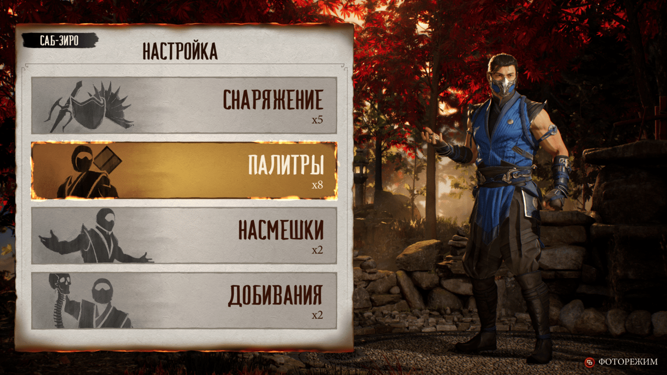 В режиме кастомизации можно сменить цвета облачения персонажей (маски, оружия и так далее), одежды или полностью стиля. За прокачку уровня каждого персонажа также открываются различные добивания вроде новых Fatality и Brutality.