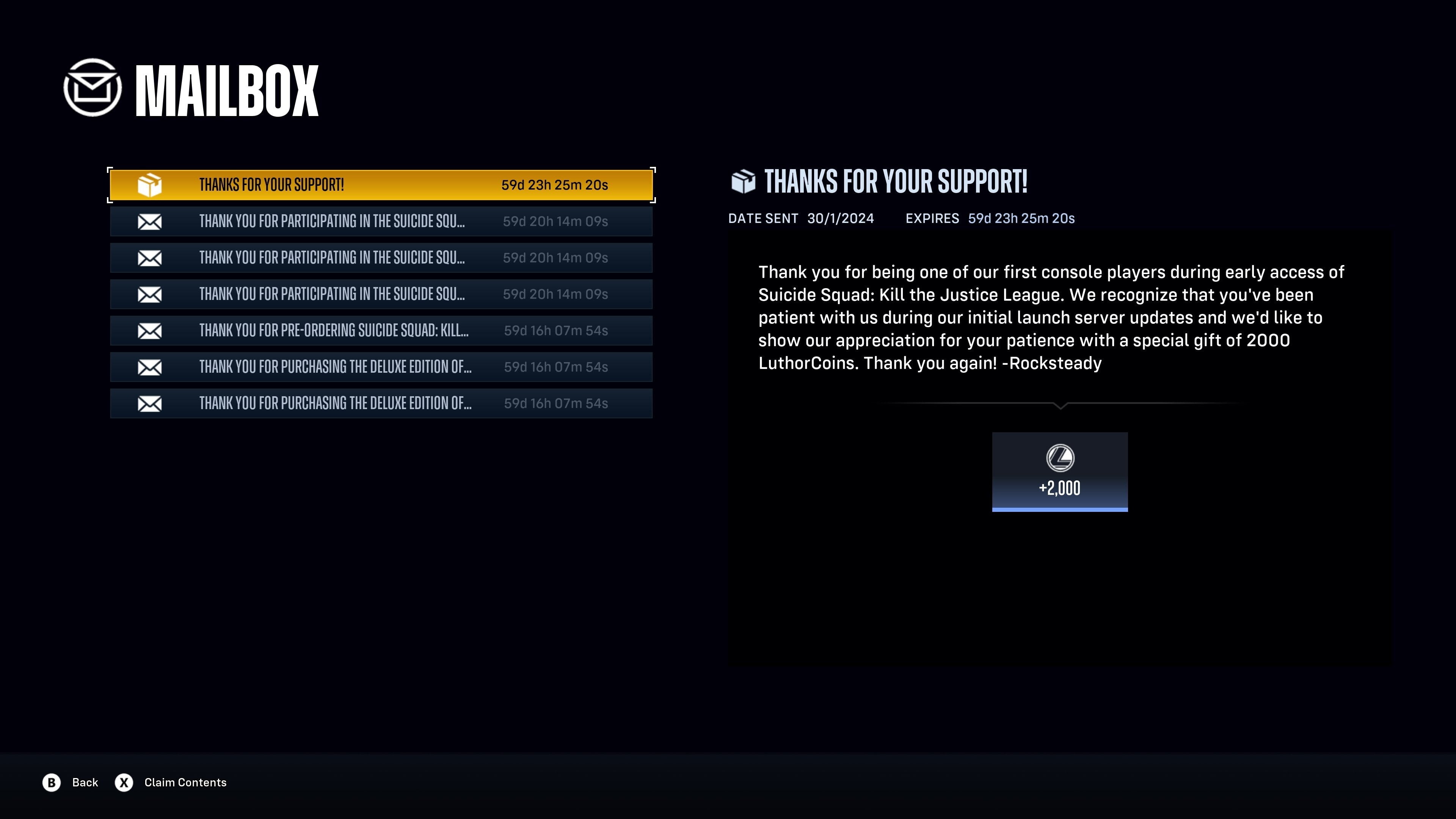 30–31 января некоторые (не все) покупатели Deluxe-издания игры получили «компенсацию» за неудачный старт – на их аккаунт было начислено 2000 единиц внутриигровой валюты. Это эквивалентно 20 долларам.