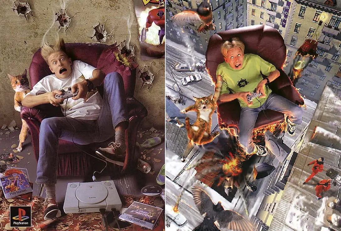Новое поколение консолей было большим шагом вперёд для видеоигровой графики. Потому на релизе в рекламе PlayStation 2 часто мелькали геймплейные кадры разных проектов — они сами по себе продавали приставку. Например, в американских кинотеатрах крутили ролик, где парень нажал на кнопку лифта — и тут же в его мозг закачало безумно интенсивный поток отрывков из разных игр. Он был в шоке — но тут же захотел ещё.