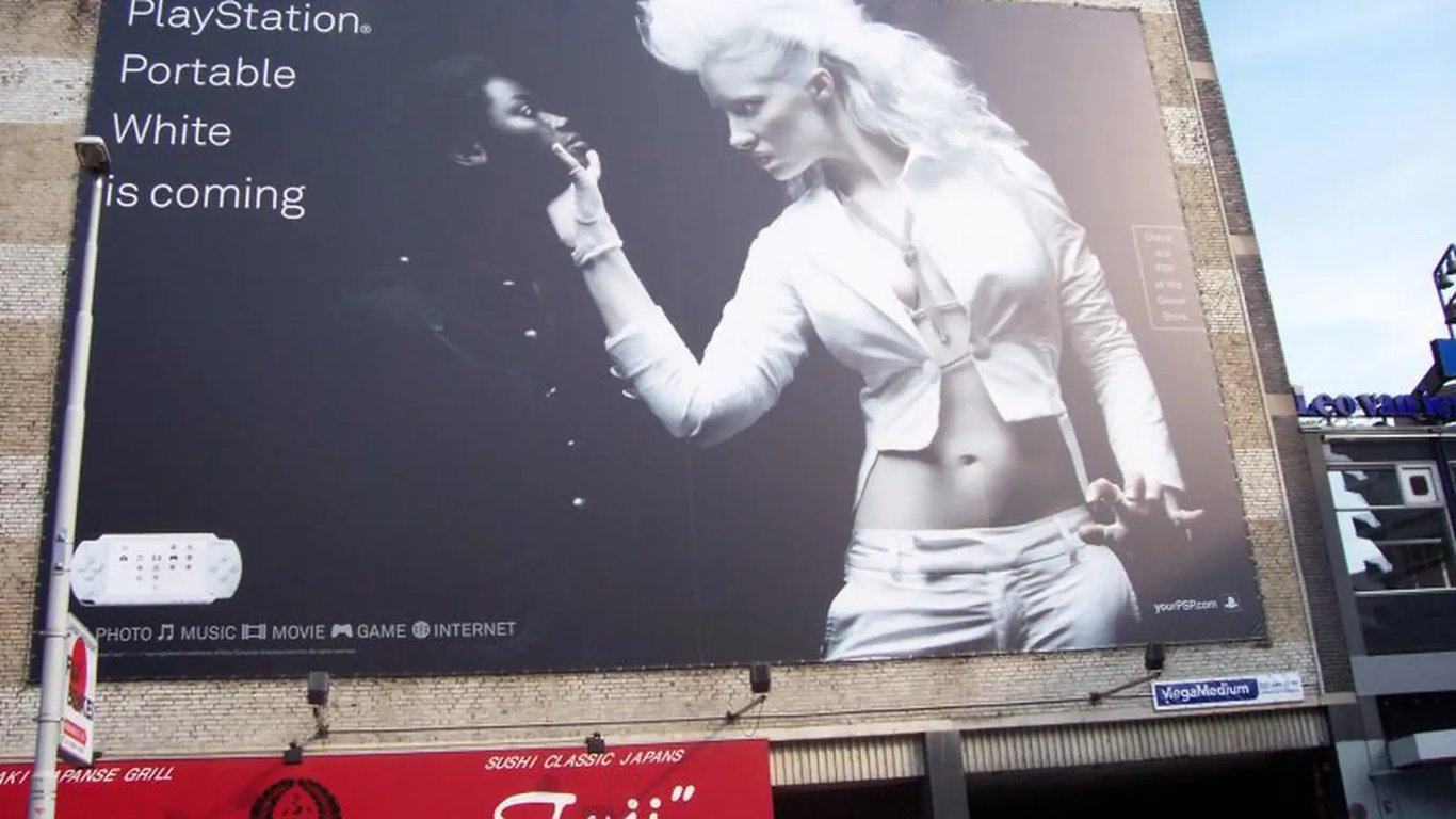 Со второй половины 2000-х маркетологи PlayStation всё чаще ввязывались в скандалы. Особенно примечательны кампании по рекламе белой PSP, которую намеренно делали провокационной. В немецких постерах, например, показывали БДСМ-госпожу в белом кожаном нижнем белье и смерть в белом балахоне.