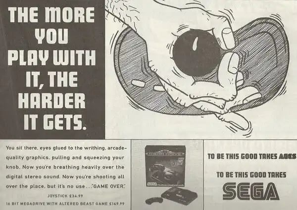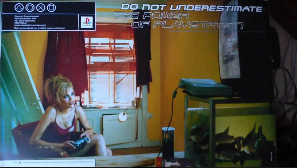 Дело в том, что другие игровые компании в то время тоже делали много абсурдной рекламы. Super Mario Strikers на GameCube рекламировали изображением двух футбольных мячей, которые висели как мошонка. А Xbox продвигали рекламой, которая была в духе отменённого ТВ-ролика «Жизнь коротка», где женщина стреляла младенцем из себя, тот в воздухе рос и в конце попадал в могилу.