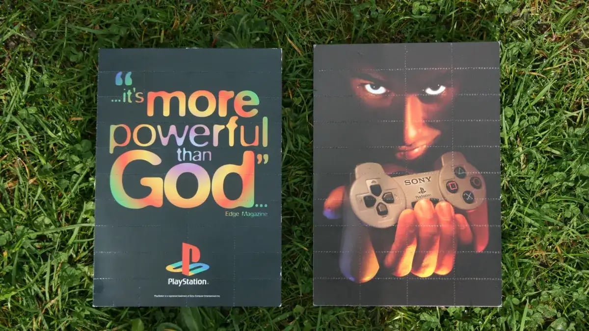 Значительную часть остальной рекламы делали в том же духе. Тем более, что в Европе к подобному относились проще, чем в США. Так, например, по всему музыкальному Гластонберийскому фестивалю 1997 года развесили флаеры с огромной надписью «…it’s more powerful than God» («… это мощнее бога»), небольшим логотипом PlayStation и таинственным человеком с контроллером на другой стороне. И всё с перфорацией, благодаря которой — какое совпадение — можно легко вырвать бумажку идеального размера для скрутки косячка.