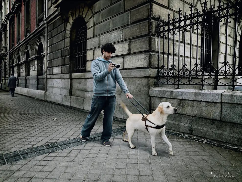 В Испании возмущались рекламе PSP, где парень одной рукой держал собаку-поводыря, а другой играл в карманную консоль. Многие считали, что это издевательство над слепыми, показывающее, будто они притворяются инвалидами.